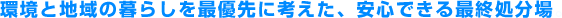 さらに自然への配慮を欠かさないことで、周辺住民の方々が心して暮らせる環境をつくりあげています。法令に基づく設計と管理、また、廃棄物の悪臭・飛散には厳重な対応をしています。